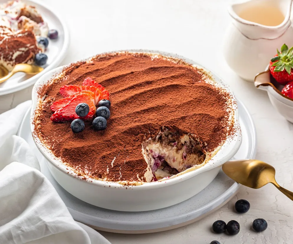 6. Przed podaniem wierzch deseru obficie posypać kakao.