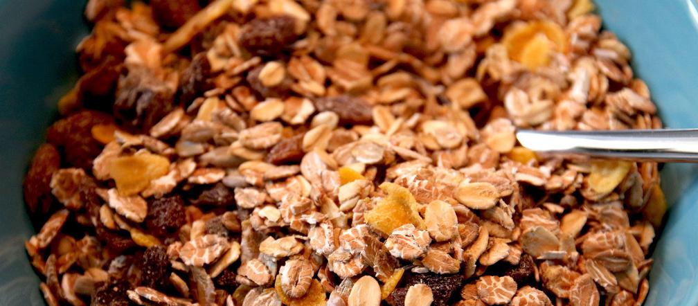 Dzień zaczynaj od śniadania składającego się z płatków z pełnego ziarna. Wybierz te o niskiej zawartości tłuszczu, z ok. 10 g błonnika w 100 g.