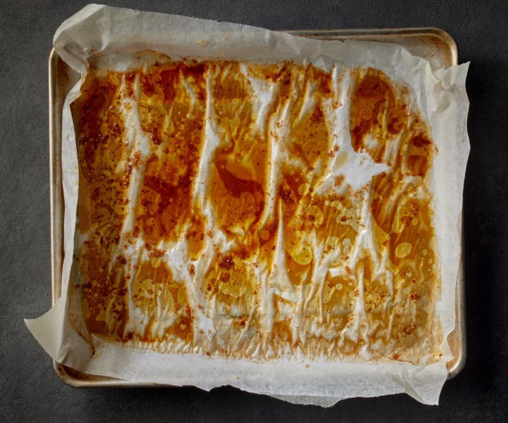 - Łatwość czyszczenia – użycie papieru do pieczenia sprawia, że szorowania blachy czy formy po upieczeniu potrawy nie jest męczące czy nawet konieczne.