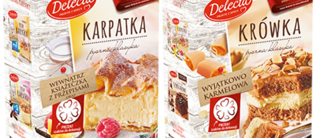 Szablony do dekoracji ciastek i deserów dołączono do opakowań popularnych słodkości Delecty: Brownie, Krówka, Babeczki Nadziane, Wuzetka, Tiramisu i Karpatka. Dekoracyjne szablony mają formę serduszek lub gwiazdek. W sumie można zgromadzić 4-elementową kolekcję. Informację o tym, jaki szablon kryje się w środku, znajdziemy na froncie kartonika.